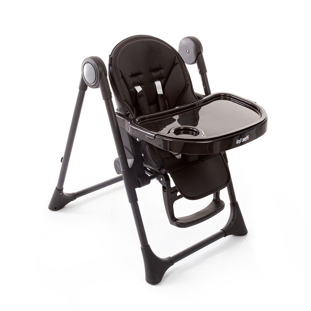 Reclinável em 5 posições, incluindo a totalmente inclinada para uso como cadeira de descanso, deixando o bebê desde recém nascido, próximo aos pais, iniciando a convivência familiar na hora da hora das refeições. Regulável em 7 posições, para termos sempre a altura adequada, 3 posições para o apoio de pés, além da bandeja dupla, removível para facilitar a limpeza. Segurança com os cintos de 5 pontos, ajustáveis em altura e largura e o apoio entrepernas que evita escorregamentos. Fechamento prático e compacto, pode ser feito com ou sem a bandeja, que se preferir, tem local para armazenamento.
