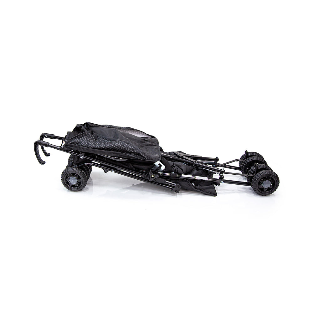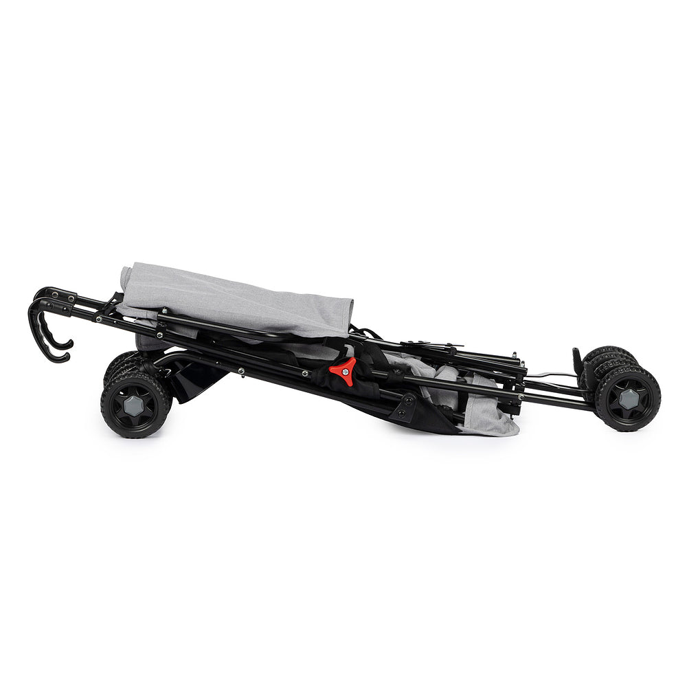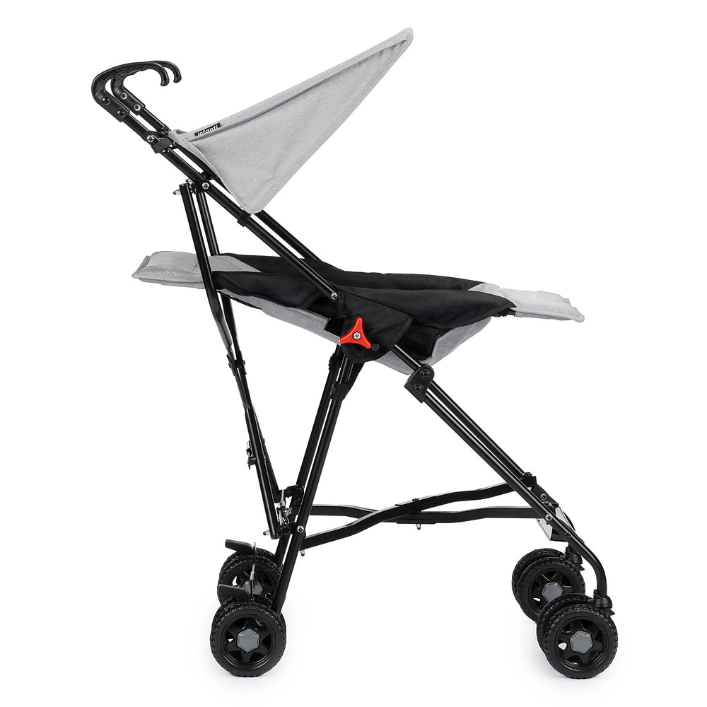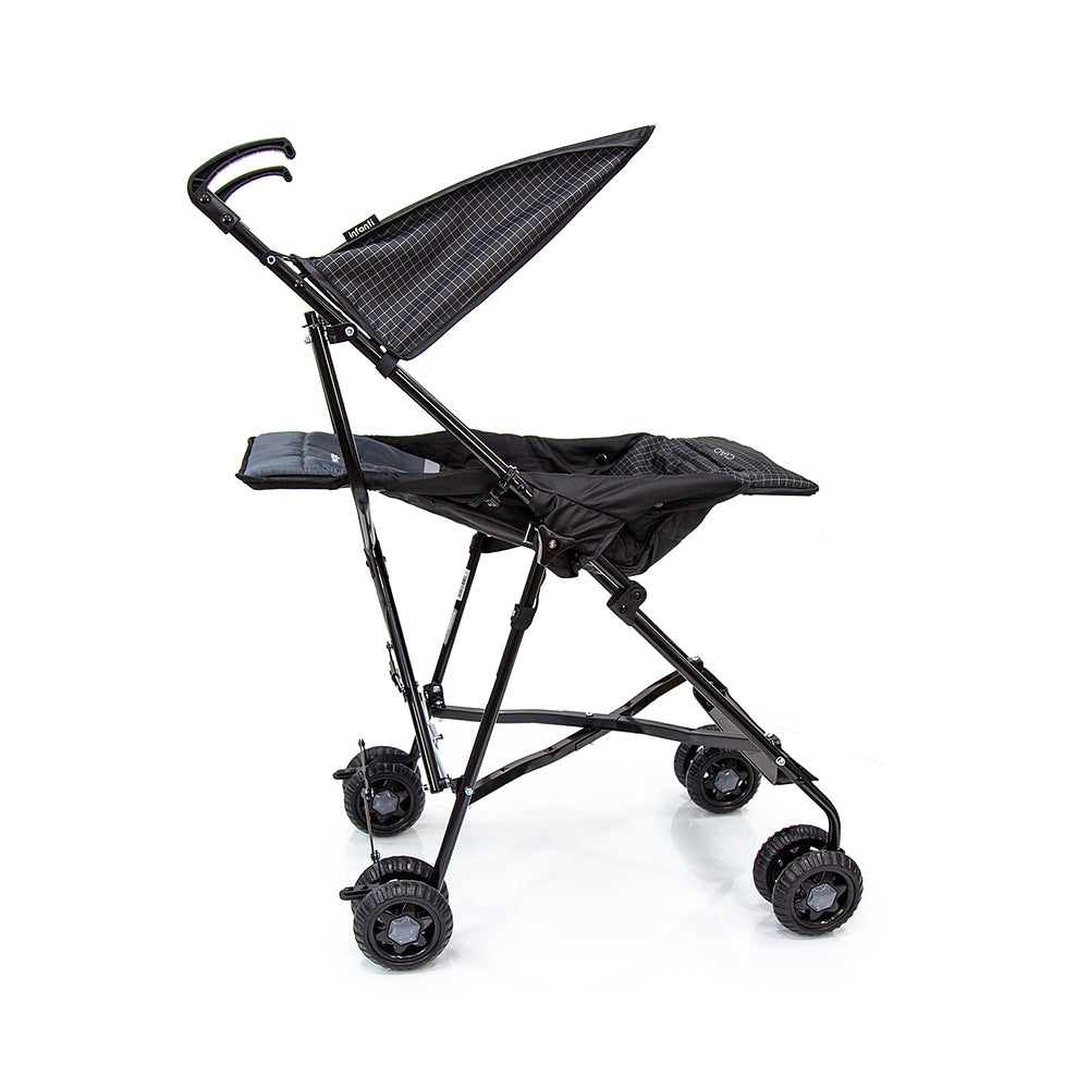 Com apenas 5,25 kg, o Ciao tem fechamento guarda-chuva e vem com uma bolsa plástica que facilita o transporte. As rodas duplas garantem estabilidade, o freio interligado nas traseiras dá segurança, e as manoplas ergonômicas acompanham os movimentos.