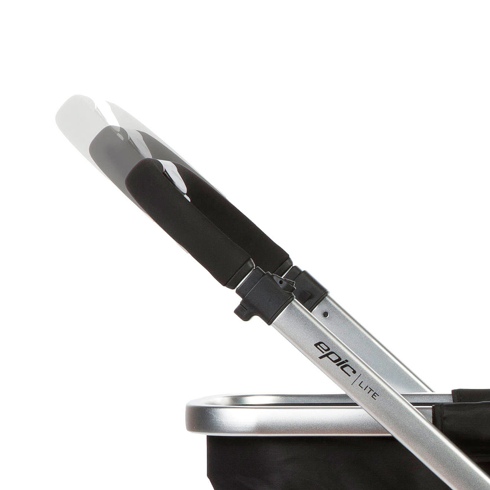 Os pais também têm conforto garantido: a manopla tem ajuste de altura, o cesto de compras é amplo, com capacidade para 3 kg e os freios são centralizados. Além disso, o Epic Lite é extremamente funcional, com capota retrátil e removível e a barra frontal também podendo ser retirada.