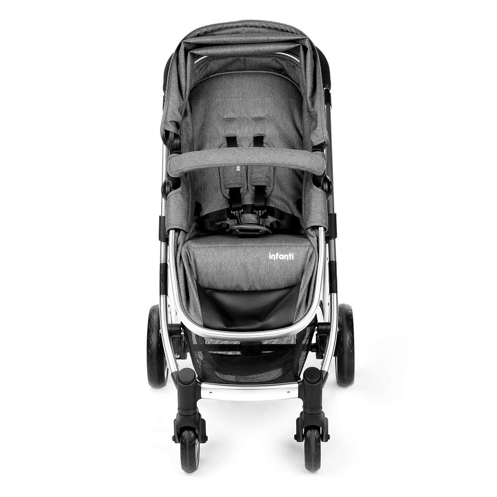 O carrinho pode ser utilizado também com o Bebê Conrforto Narni, que tem alça ajustável: para balanço ou ficar fixa, e ainda para transporte ou para instalação no carro ou no carrinho. Ele também conta com espuma extra no interior do assento, capota retrátil e removível, além de cinto de segurança com 3 opções de ajuste de altura.