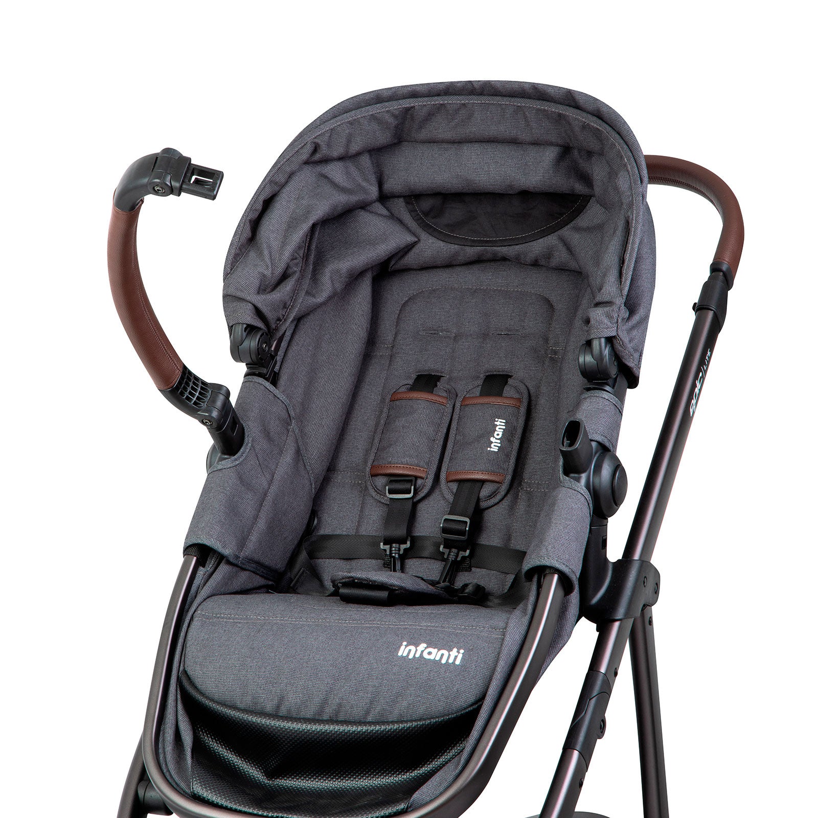 O novo conjunto Travel System Epic Lite Trio Edição Especial da Infanti é puro charme com os detalhes em revestimento especial na manopla, na barra frontal do bebê e na alça do bebê conforto.