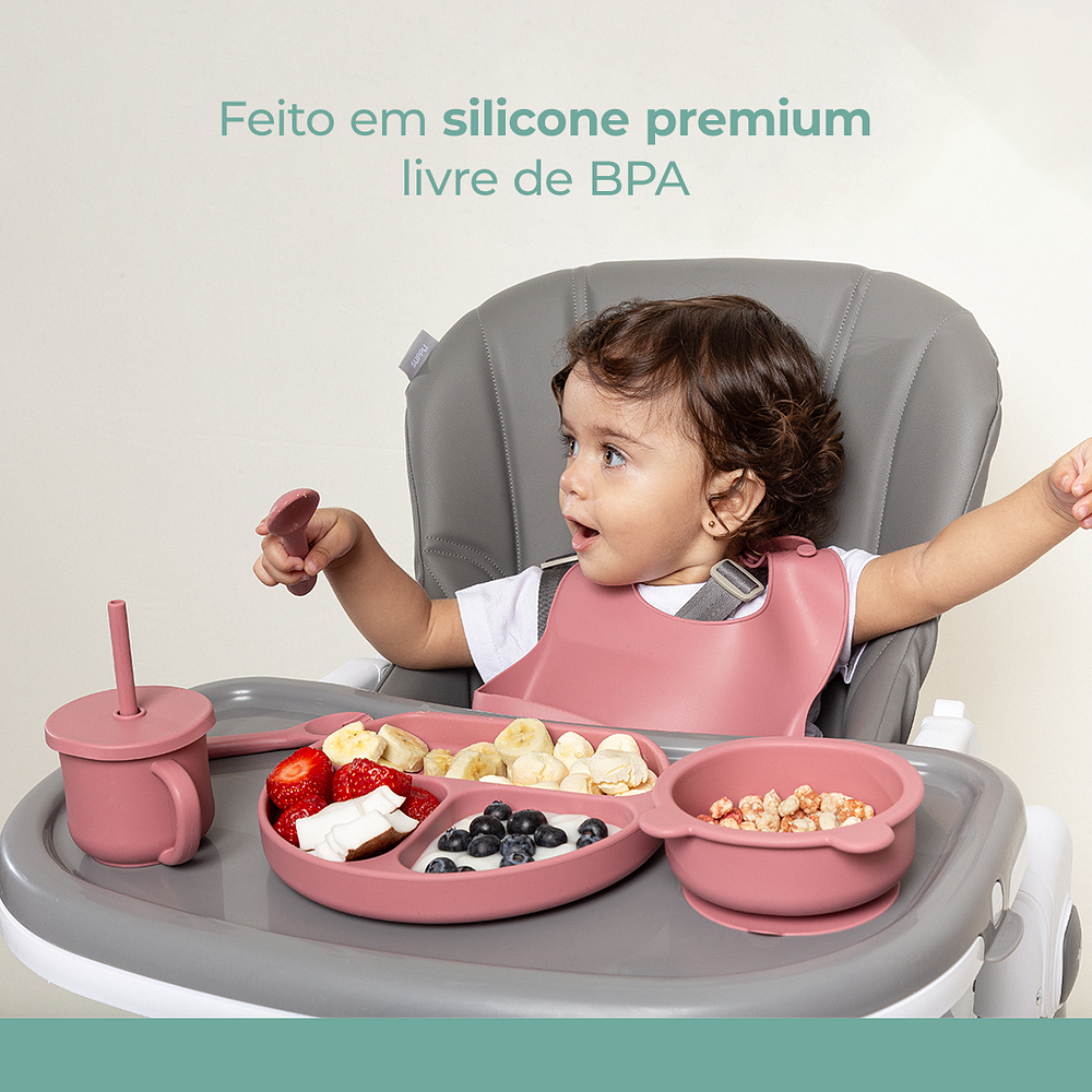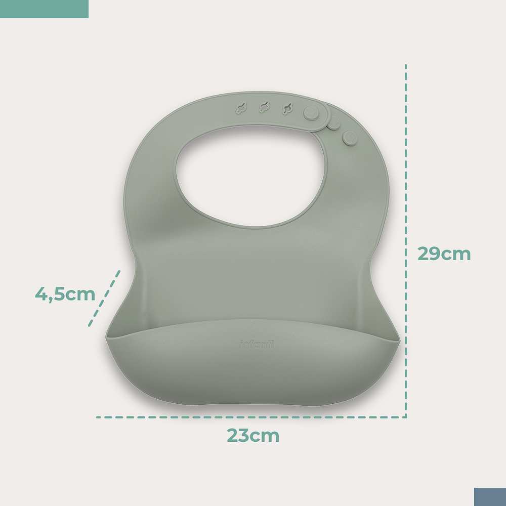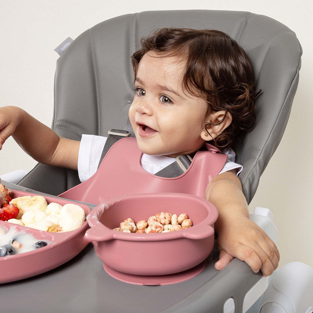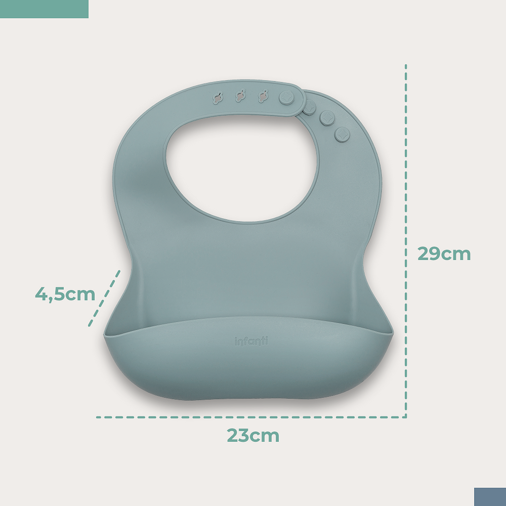 O Babador de Silicone com Pega-migalhas é projetado para uso por bebês a partir de 6 meses de idade e conta com 4 ajustes de tamanho na altura do pescoço. Ele ainda é super prático na hora da limpeza, podendo ser lavado na máquina de lavar louças.