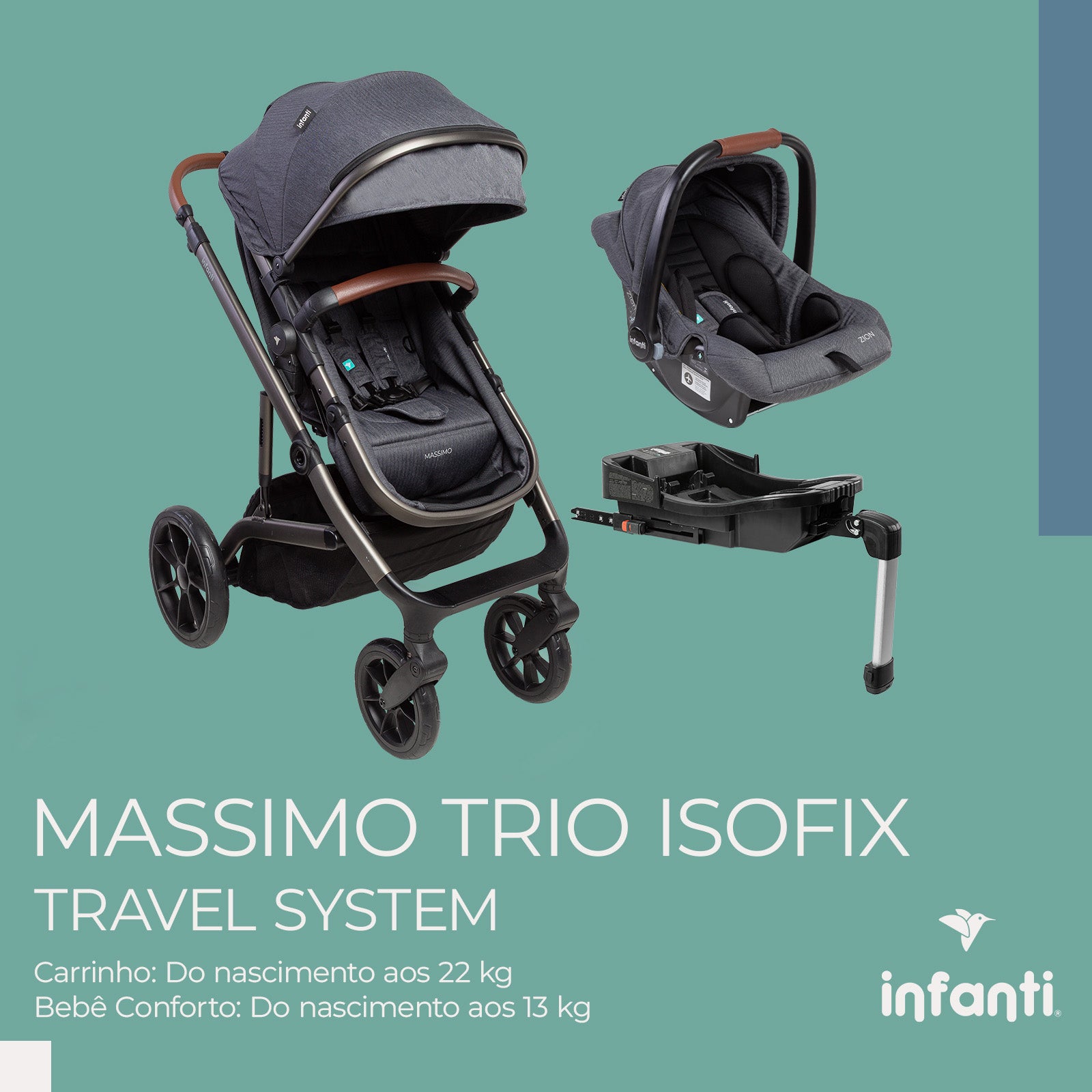 Pensado para estar presente desde o primeiro passeio, o TS Massimo Trio ISOFIX traz tudo que seu bebê precisa: carrinho que vira moisés, bebê conforto Zion com 5 modos de uso e base ISOFIX, acompanhando o pequeno da maternidade até as descobertas pelo mundo que começa a se abrir ao redor.