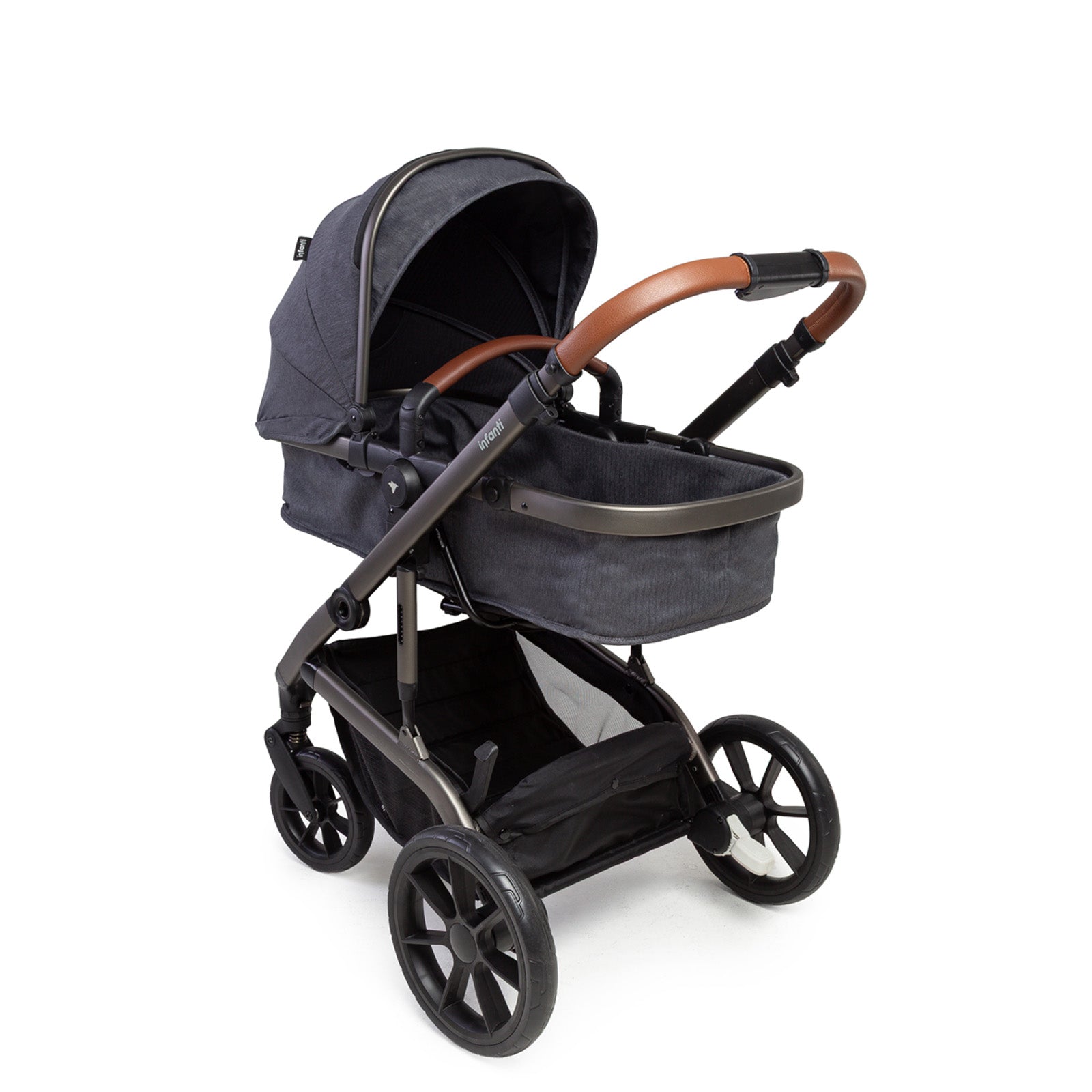 Os amortecedores centralizados e as rodas grandes dão mais estabilidade mesmo em calçadas irregulares, e seu cesto tamanho família comporta itens que você pode precisar durante o dia. O bebê conforto tem alça com 4 posições de ajuste para 5 modos de uso: transporte, instalação no veículo ou no carrinho, modo fixo e balanço.